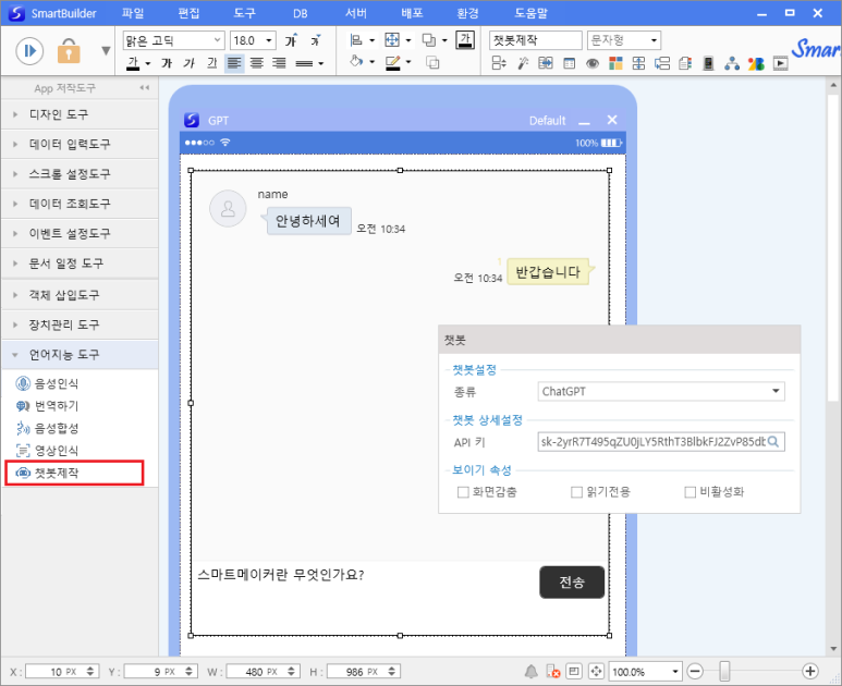 스마트메이커를 이용해 ChatGPT 를 사용해 보도록 하겠습니다.